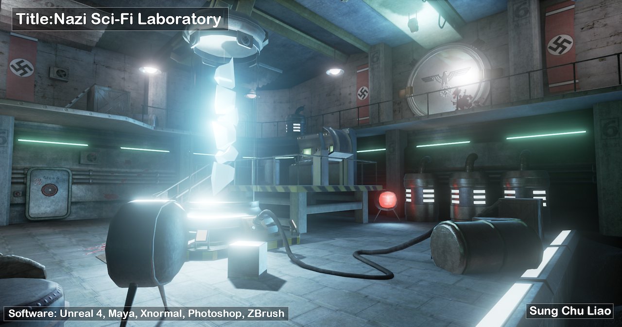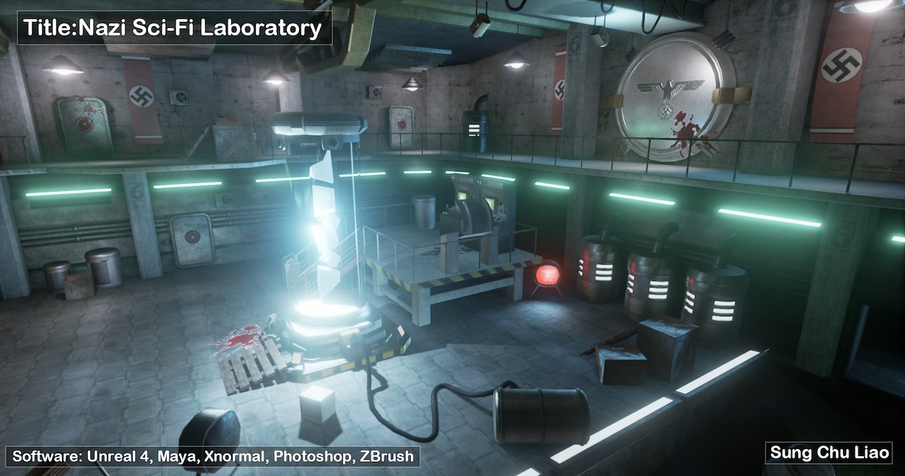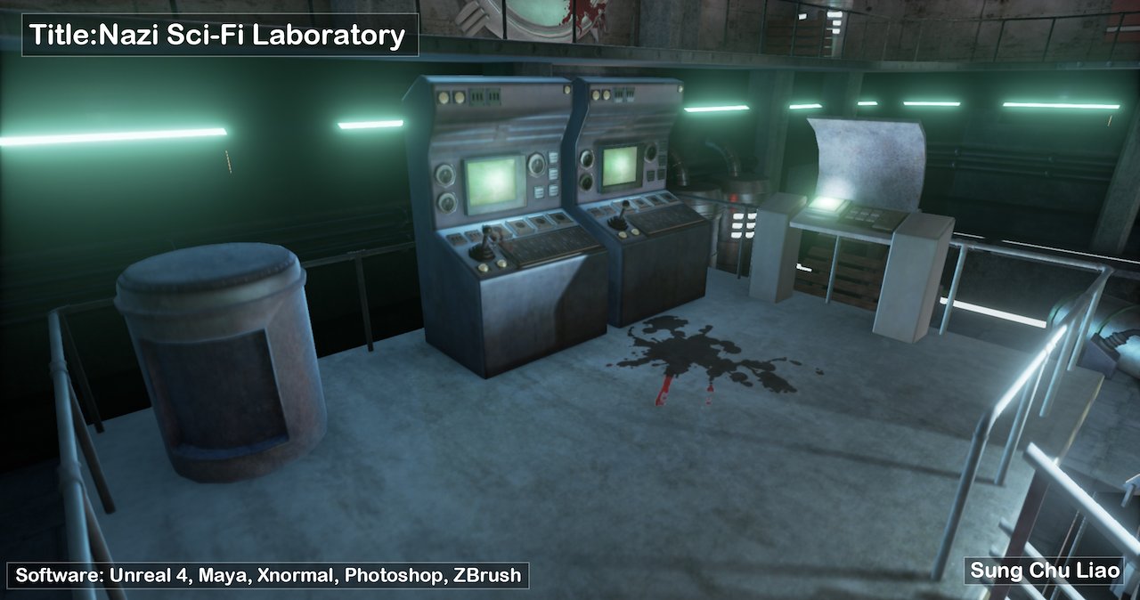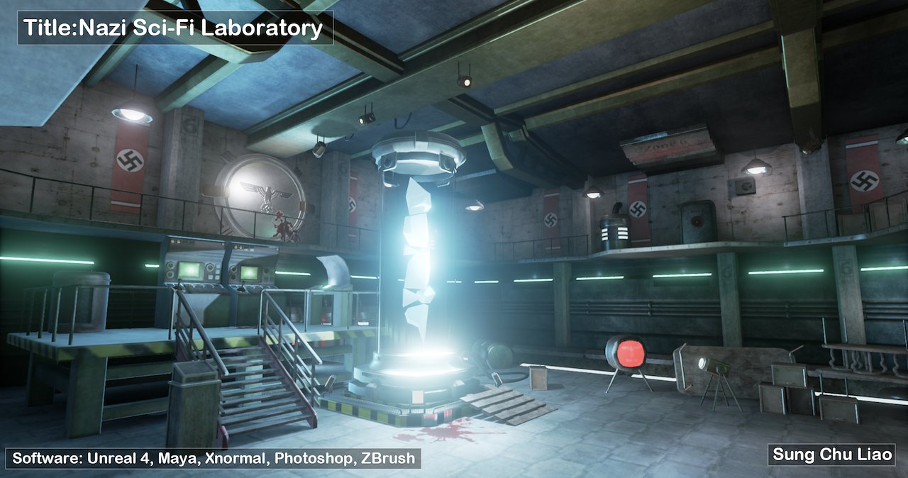 This project was my final project for my environment modeling class last year. The concept was base on the Nazi mix of Sci-Fi. Before I started the project, I use Photoshop to create the layout of the maps. I would then used Maya to model the element. After I finished the modeling and UVing, I bring the model to ZBrush to create the High Res model and bake a normal map with X-Normal. At last, I put all of this element to unreal 4 and play around the material blueprint.